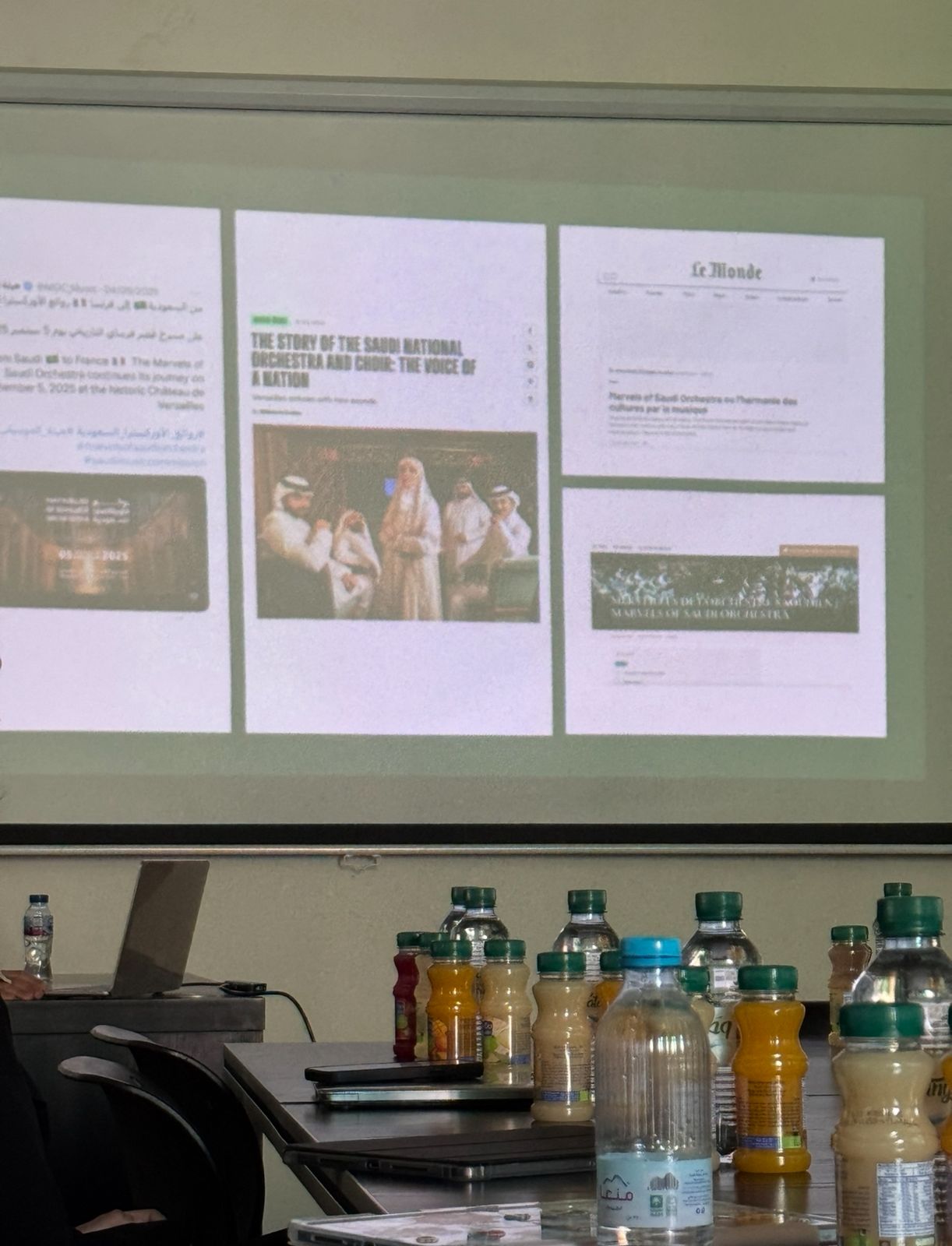تخلّل النشاط الاستماع إلى مقطوعات من الأوركسترا السعودية التي أُقيمت مؤخرًا في باريس، في إشارة إلى الحضور الثقافي والفني المتنامي للمملكة على الساحة الدولية، وهو ما أضفى بعدًا جماليًا وفنيًا على التجربة التعليمية