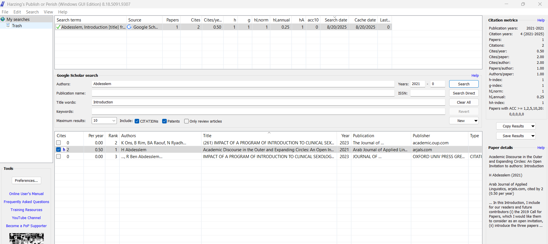 - Abdesslem, H. (2021). Introduction. Arab Journal of Applied Linguistics, 6(1), i-viii. Click here for this paper's citation report (8/20/2025) - 2024-2025 academic year / 1446 Hijri. Please click here for a summary of the paper.