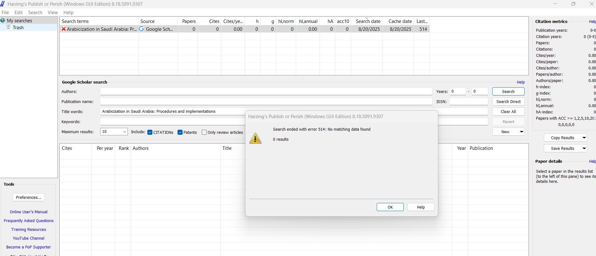 - Alabdaly, A. H., & Metwally, A. A. (2021). Arabicization in Saudi Arabia: Procedures and implementations. International Journal of Linguistics, 13(6), 60-75. https://doi.org/10.5296/ijl.v13i6.19317. Click here for this paper's citation report (8/20/2025) - 2024-2025 academic year / 1446 Hijri. Please click here for a summary of the paper.