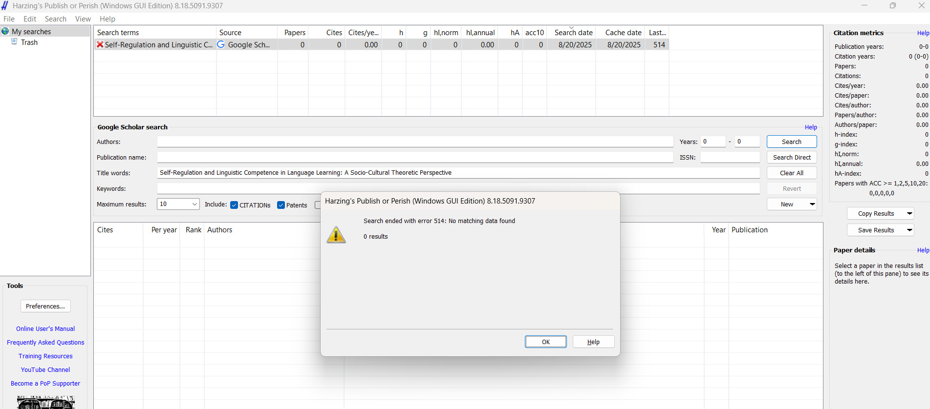 - Alahmari, M. (2021). Self-Regulation and Linguistic Competence in Language Learning: A Socio-Cultural Theoretic Perspective. Journal of Research in Languages & Translation. King Saud University, Saudi Arabia. https://colt.ksu.edu.sa/ar/node/1429. Click here for this paper's citation report (8/20/2025) - 2024-2025 academic year / 1446 Hijri. Please click here for a summary of the paper.