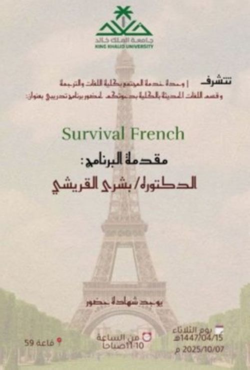 .ويأتي هذا النشاط امتدادًا لرسالة الكلية في خدمة المجتمع ودعم المبادرات التي تعزز الانفتاح على اللغات والثقافات العالمية، مع التأكيد في الوقت نفسه على الاعتزاز بالهوية الثقافية السعودية